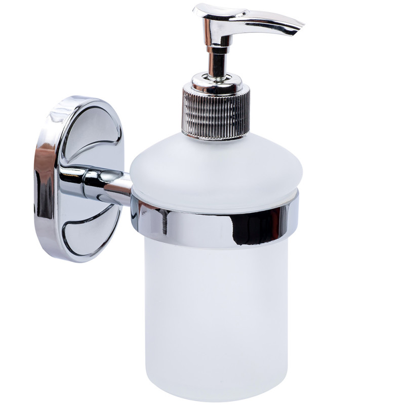 Дозатор для рідкого мила KRM Elbe-ACG2927 від Kroner кріпиться на стіну, не піддається корозії. Колба з матового скла знімна, завдяки чому догляд за ним буде простим і легким. У виробі використовуються кільця ущільнювачів (прокладки), необхідні для щільного з'єднання металу та кераміки, які також перешкоджають виникненню шуму внаслідок зіткнення частин виробу.