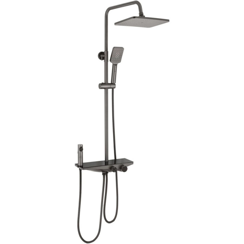 - Душова система має компактні розміри, що дозволяє легко інтегрувати її в будь-який інтер'єр ванної кімнати: висота – від 885 до 1415 мм, ширина – 390 мм, глибина – 488 мм.