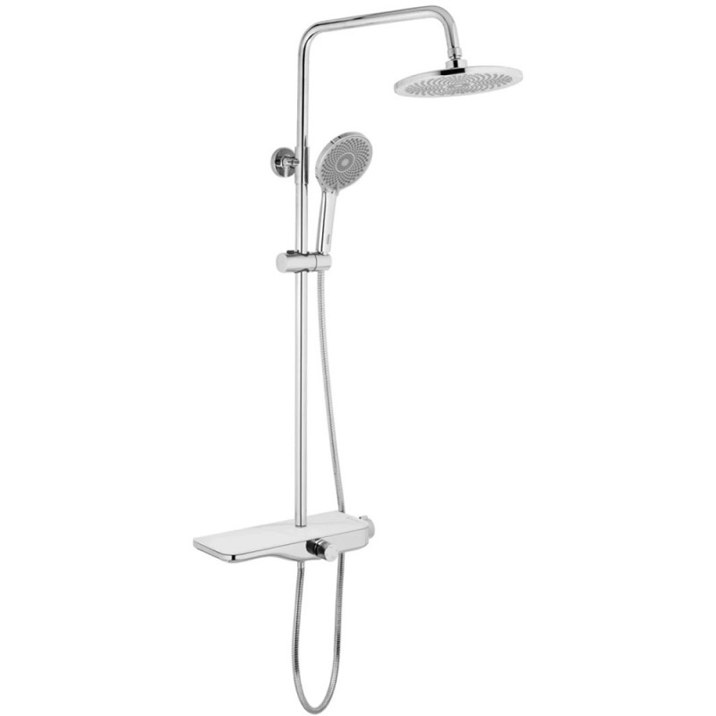 - Колірне рішення у хромі з білими елементами додає душовій системі сучасного та стильного вигляду, що ідеально підходить для сучасних інтер'єрів.