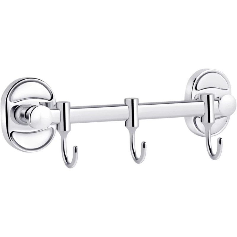 Тримач для рушників і халатів Kroner KRM Elbe-ACC2914-3 виготовлений у формі стрижня з трьома пересувними гачками на ньому. Тримач для рушників виготовлений із міцного металу з хромованою поверхнею. Приховане кріплення дає змогу зберегти оздобу, а хромоване покриття запобіжить утворенню корозії та бруду. Тримач для рушників кріпиться на стіні на бажаній висоті.