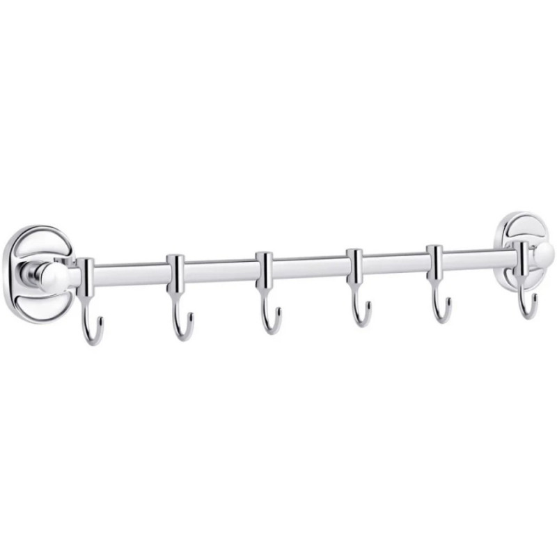 Тримач для рушників і халатів Kroner KRM Elbe-ACC2914-6 виготовлений у формі стрижня із шістьма пересувними гачками на ньому. Тримач для рушників виготовлений із міцного металу з хромованою поверхнею. Приховане кріплення дає змогу зберегти оздобу, а хромоване покриття запобіжить утворенню корозії та бруду. Тримач для рушників кріпиться на стіні на бажаній висоті.