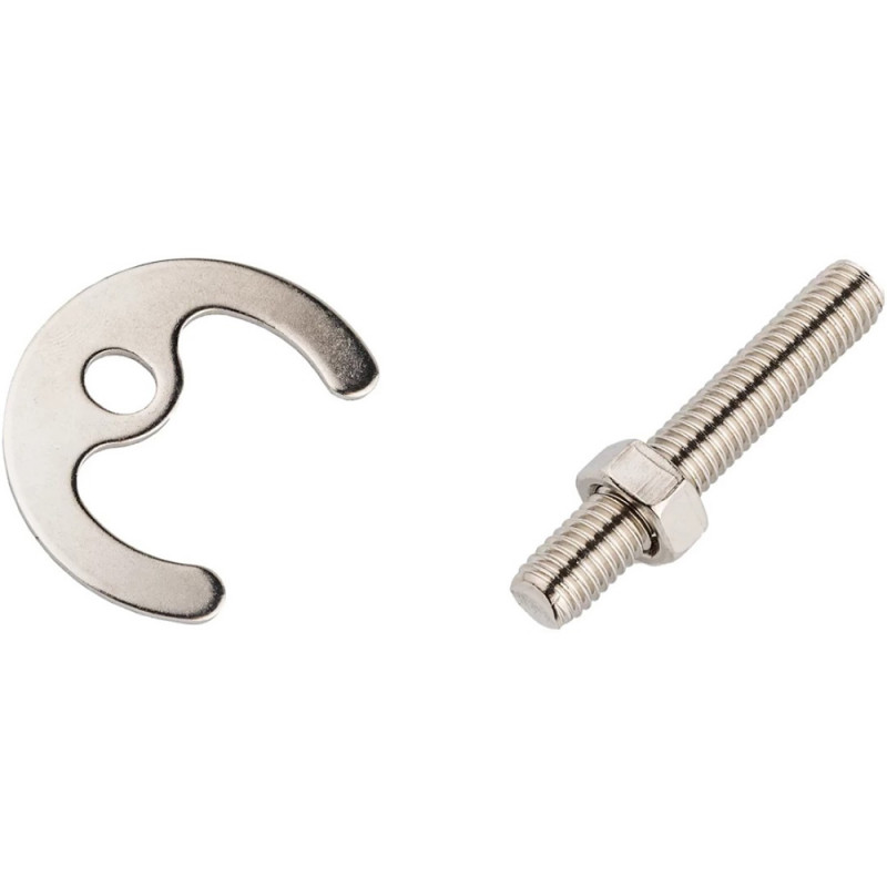 Кріплення для змішувача від Kroner з однією шпилькою підійде для гнучкого з‘єднання. Воно складається з однієї латунної шпильки і фігурної пластини з одним отвором.