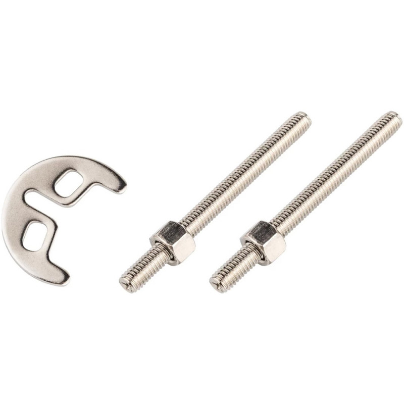 Кріплення для змішувача від Kroner з двома шпильками підійде для гнучкого з‘єднання. Воно складається з двох латунних шпильок і фігурної пластини з двома отворами.