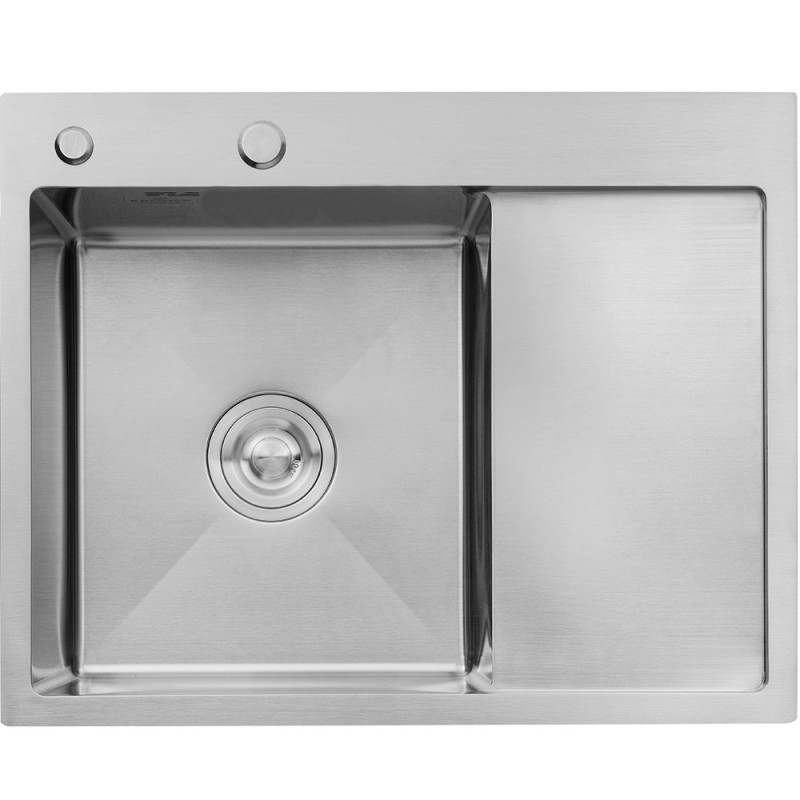 Кухонна мийка Kroner KRP Gebürstet - 6350LHM (3,0/1,0 мм) виготовлена з високоякісної нержавіючої сталі харчової марки, що дозволить виробу прослужити довгі роки. Відмінна якість та дизайн миття дозволять задовольнити найвищі вимоги та створити затишок у вашому будинку! Випуск сифону виготовлений з нержавіючої сталі зі сміттєзбірником у формі цебра і закривається пробкою-кришкою, яку можна використовувати за необхідності набрати води в чашу. Мийка обладнана переливом для відведення води в екстрених випадках. Інтегрований спосіб монтажу дозволяє встановлювати мийку в будь-якому можливому варіанті, класичному врізному - над стільницею, інтегрованому - мийка встановлюється в рівень зі стільницею, і монтаж під стільницю.