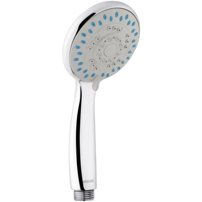 Лійка для душу Kroner KRM-C709 дозволяє розсікати єдиний потік води на сотні дрібних струмочків, роблячи гігієнічні процедури зручнішими, приємнішими та розслаблюючими. Завдяки стильному дизайну, ергономічній формі ручна лійка впишеться у будь-який інтер'єр. Діаметр ручного душу становить 80 мм та обладненний чотирма режимами струменя. Перемикання режимів здійснюється обертанням диска. Матеріал лійки гіпоалергенний ABS пластик, з хромованим покриттям. Універсальне підключення шланга 1/2".