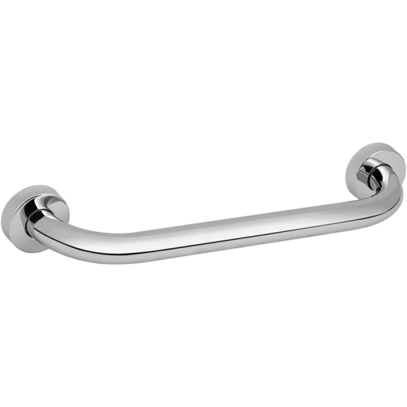 Поручень для ванни KRM Rizze-ACC3518 від Kroner завдовжки 380 мм вироблений із металу з хромованим покриттям, що запобігає утворенню корозії. Його можна розмістити горизонтально або вертикально, біля ванни або унітаза, а також використовувати як тримач рушника.