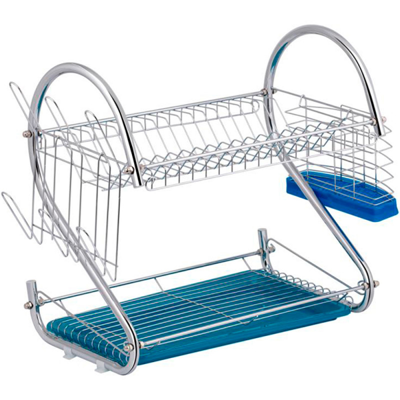Настільна сушарка для посуду Kroner KRM Rizze-ACC3208 встановлюється біля мийки. Вона дозволяє зберігати посуд сухим і завжди під рукою. Виріб має підставку для ложок і виделок, гачки, тримач для склянок і тримач для тарілок з синім піддоном під ними. Піддон легко знімається й простий в очищенні.