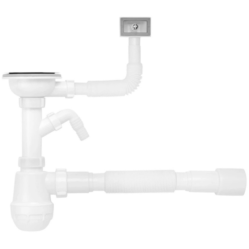 Сифон для кухонної мийки Kroner KRP - KS02-1 3 1/2"х40/50 мм з відводом для пральної машини, з квадратним переливом
