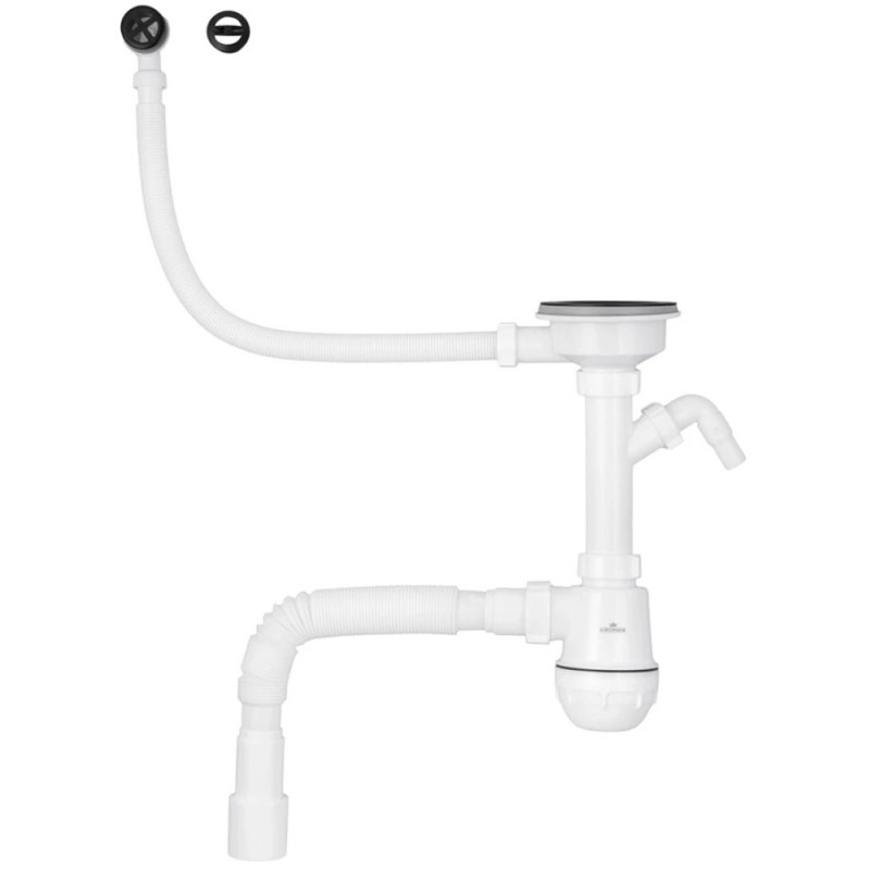 Сифон для кухонної мийки Kroner KRP KS02R-1BLK 3 1/2"х40/50 мм з відводом для пральної машини, з круглим переливом