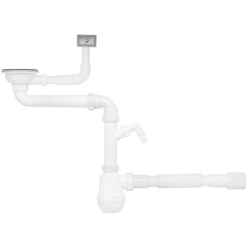 Сифон для кухонної мийки Kroner KRP - KS02S-1 3 1/2"х40/50 мм з відводом для пральної машини, з квадратним переливом