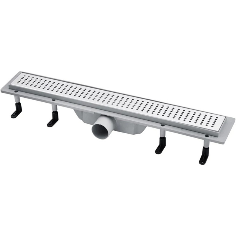 Лінійний трап Kroner KRP Harz L80 Löcher з декоративною решіткою розміром 800х73 мм з нержавіючої сталі, виконує функцію водовідведення з душових кабін без застосування душового піддона, на рівні з підлогою. Корпус трапа виготовлений зі стійкого до агресивних середовищ міцного пластику. Також душовий трап має сухий гідрозатвор діаметром 50 мм, який надійно захистить від проникнення неприємних запахів з каналізаційних труб. Конструкція лотка дає можливість без зайвих труднощів почистити виріб.