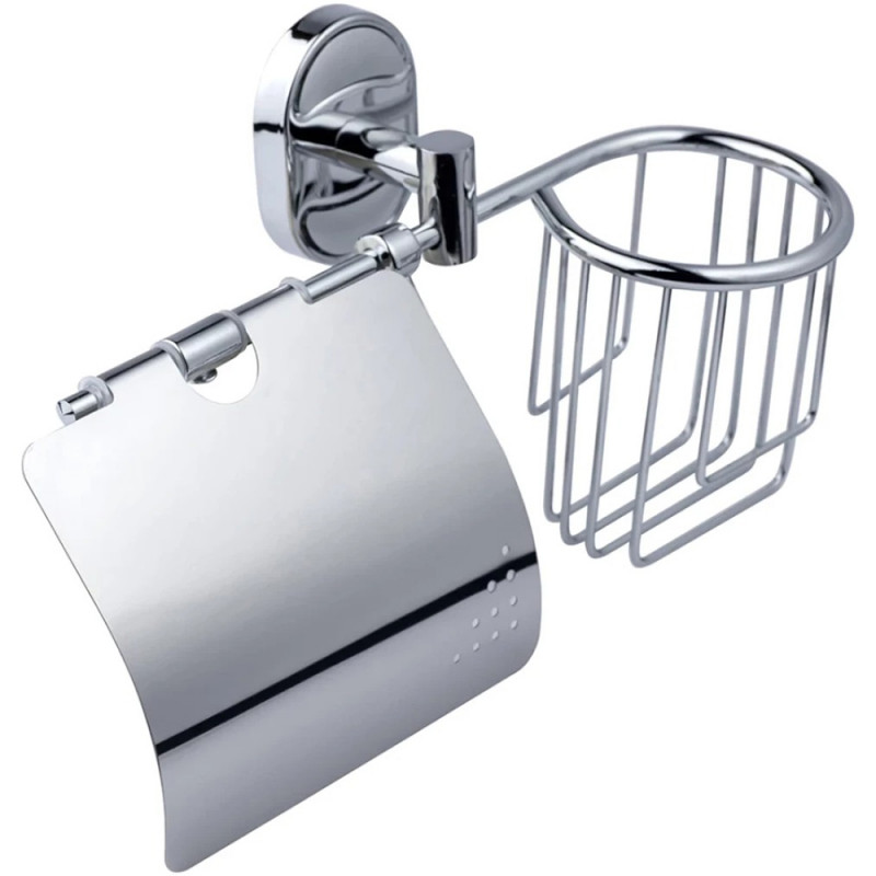 Тримач для туалетного паперу KRM Elbe-ACC2903-1 від Kroner виготовлений із міцного, хромованого металу, який поєднується з усіма аксесуарами санвузла. Тримач обладнаний кришкою, яка захищає рулон туалетного паперу від бризок і пилу, а також тримачем для освіжувача повітря. Тримач із декоративними вставками кріпиться на стіну шурупами на необхідну висоту.