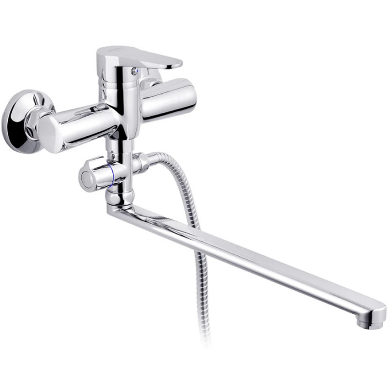Змішувач для ванної Kroner KRM Elbe-C072 оснащений довгим поворотним виливом 350 мм та важелем керування. Регулювання напору та температури води забезпечує керамічний картридж. Для прийому душу є гарнітур: душова лійка діаметром 80 мм (1 режим), душовий шланг довжиною 1500 мм і настінний тримач на 2 положення. Для перемикання на душ/вилив достатньо повернути дивертор на 90 °. У комплекті ексцентрики та декоративні розетки.