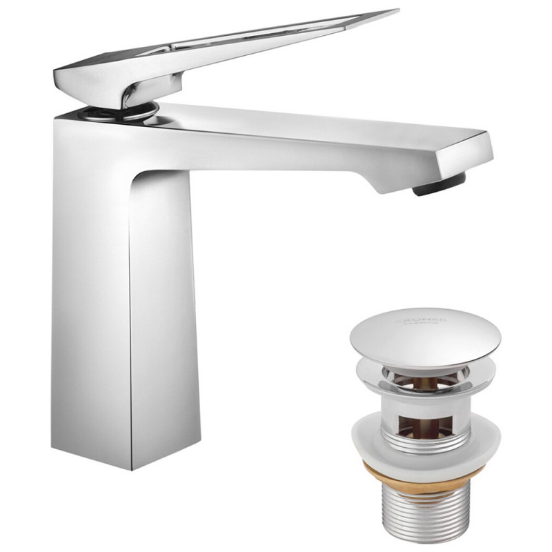 Вибирайте хромований змішувач для раковини від офіційного партнера Kroner, щоб додати ванній елегантності та функціональності. Цей кран із донним клапаном створений для комфорту та довговічності, підкреслюючи ваш бездоганний смак.